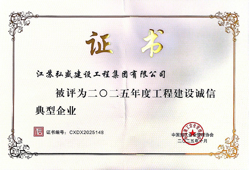 以诚信铸就品牌发展基石 ——弘盛集团荣膺“2025年工程建设诚信典型企业”