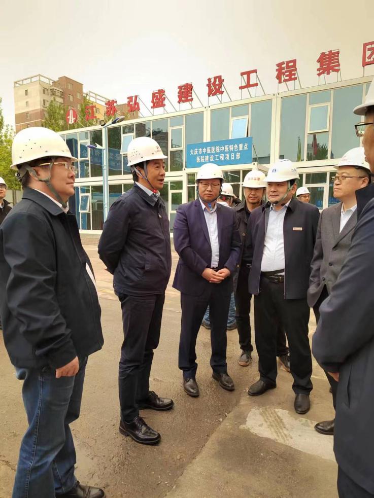 2023年5月20日上午,江苏省住建厅党委书记费少云、黑龙江省住建厅常务副厅长李守志、黑龙江省住建厅建管处处长赵伟霞等一行多人视察我司承建的大庆市中医医院中医特色重点医院项目,江苏省住建厅东北办事处、大庆市政府、大庆市住建局及大庆市中医医院主要领导陪同视察。集团公司常务副总经理师永生接待了费书记一行,并作了项目建设介绍。