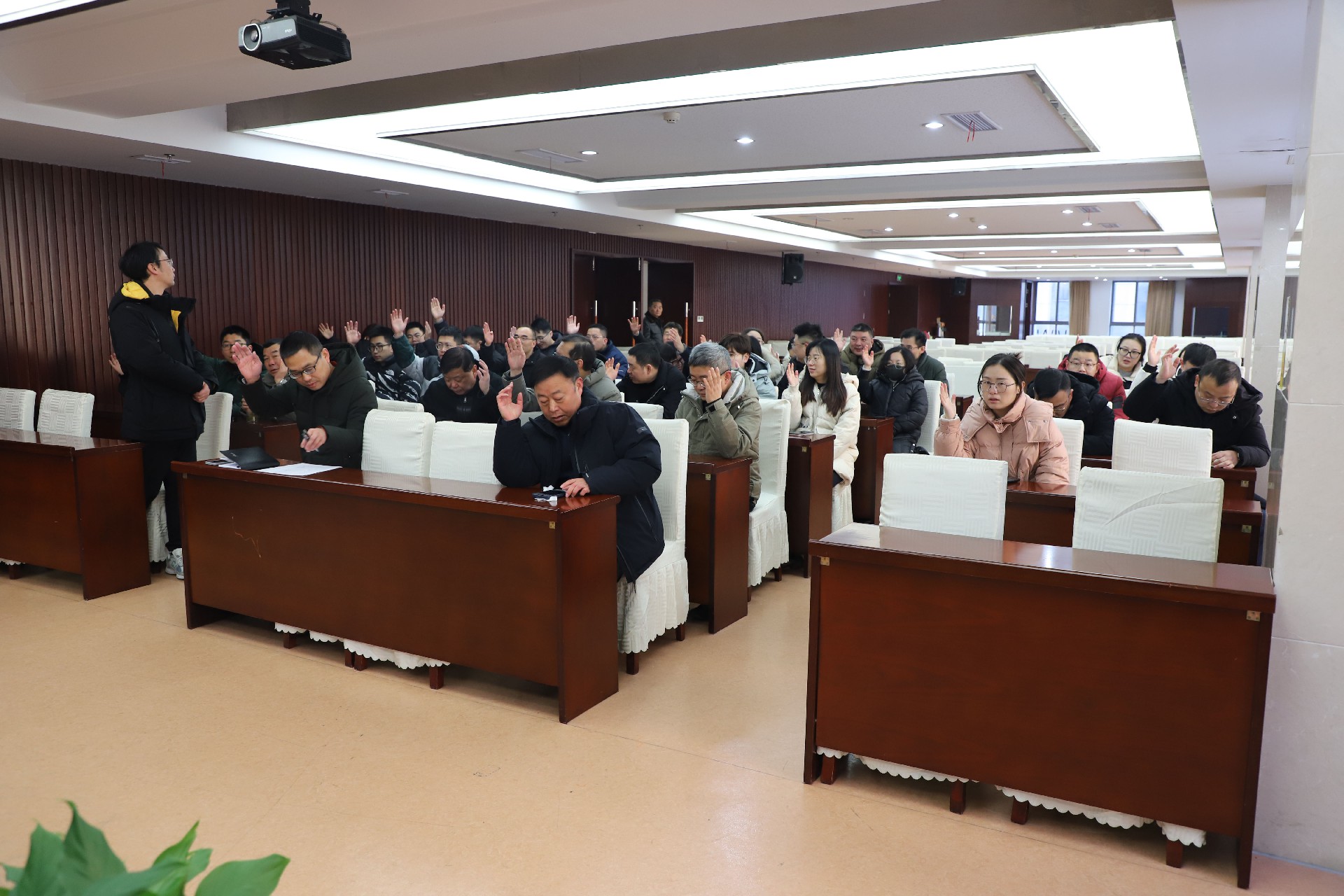 2023年12月22日上午,集团公司召开四届三次职工代表大会,讨论推荐仇兆林同志为2023年度扬州市职业大学高邮湖校区项目劳动竞赛先进个人,同时推荐为扬州市五一劳动奖章候选人以及讨论推荐扬州职大高邮湖校区项目钢筋工班组为2023年度扬州市职业大学高邮湖校区项目劳动竞赛先进班组,同时推荐为扬州市工人先锋号候选班组。