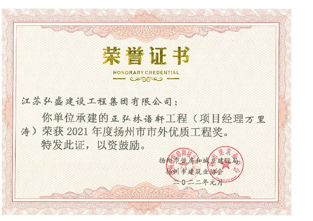 正弘林宇轩项目荣获2021年度扬州市外优质工程奖