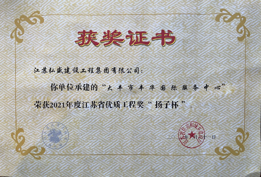“大丰市丰华国际服务中心”荣获2021年度江苏省优质工程奖“扬子杯”