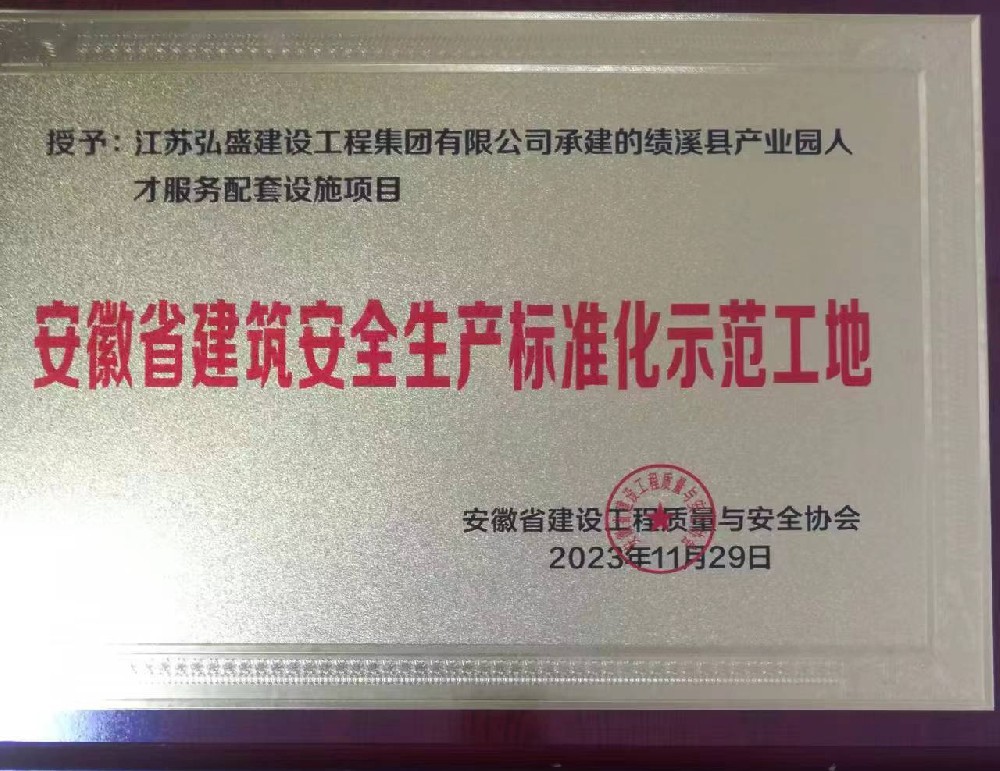 绩溪县产业园人才服务配套设施项目荣获安徽省建筑安全生产标准化示范工地