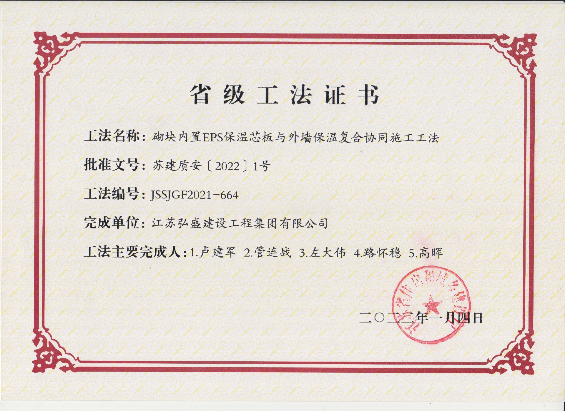 砌块内置EPS保温芯板与外墙保温复合协同施工工法