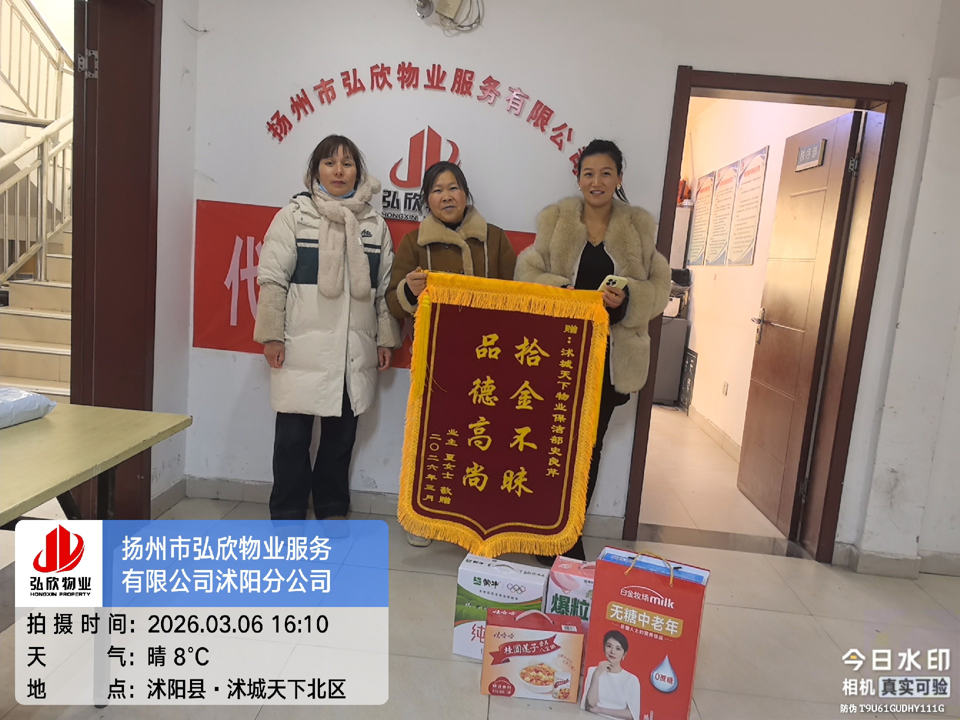 拾金不昧显高尚 平凡之举暖人心 ——沭阳沭城天下小区保洁员拾获金条完璧归赵